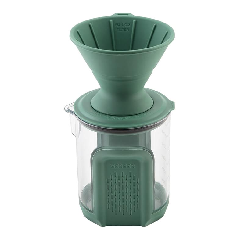 This fully packable coffee set features a stainless-steel kettle, a #2 silicone pour-over, a BPA-free Tritan carafe, a measuring spoon/stir stick, and a storage bag.