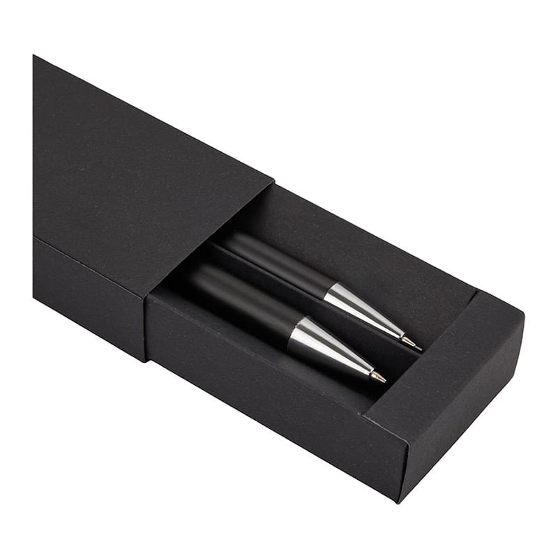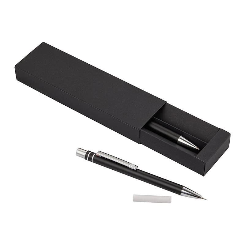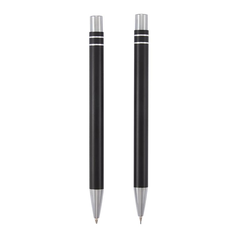 The Mod Recycled Pen and Pencil Set combines sustainable materials with everyday functionality. Made with 100% recycled aluminum and sleek chrome accents, both pieces offer smooth, reliable writing. Both pieces are equipped with chrome plungers; the pen includes 1.0mm tip with smooth black ink while the pencil has a precise 0.7mm tip. This set includes a premium black giftbox. By choosing this set, you're making a positive impact on the environment, as one percent of sales are donated to environmental nonprofits through a partnership with 1% For The Planet.