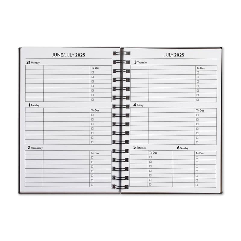 The Castelli WireO Chia MedioĀ Academic Planner measures 5 1/2" x 8".Ā The standard book block is printed of FSC Ā paper that starts in July.Ā This planner is bound with standard black wire, and has square corners.Ā Our Academic planner can be customized, call for details and pricing.