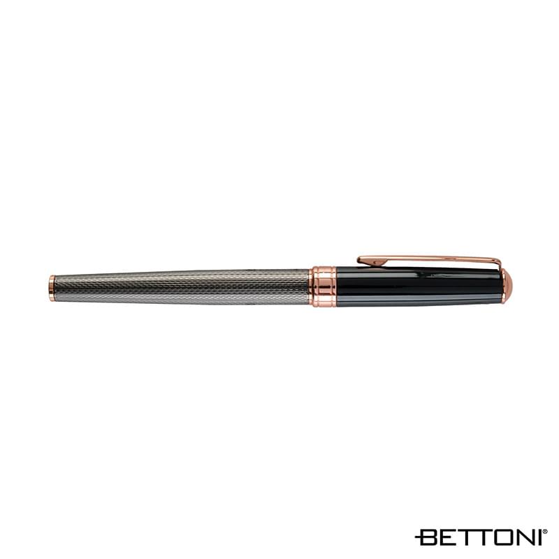 Designed for those who appreciate precision and sophistication, the BettoniĀ® Belloro Brass Cap-Off Rollerball Pen delivers fluid, ink-rich lines with every stroke. Its premium brass body provides a substantial feel, while the engraved lower barrel adds artisanal detail. Accented with rose gold trims, the pen blends classic styling with a modern edge. The removable cap ensures the ink stays fresh, and the replaceable German Made black ink cartridge offers long-term usabilityāideal for signing documents, taking notes, or gifting with distinction. Each BettoniĀ® writing instrument is packed in a black triangle gift box.