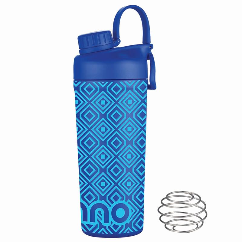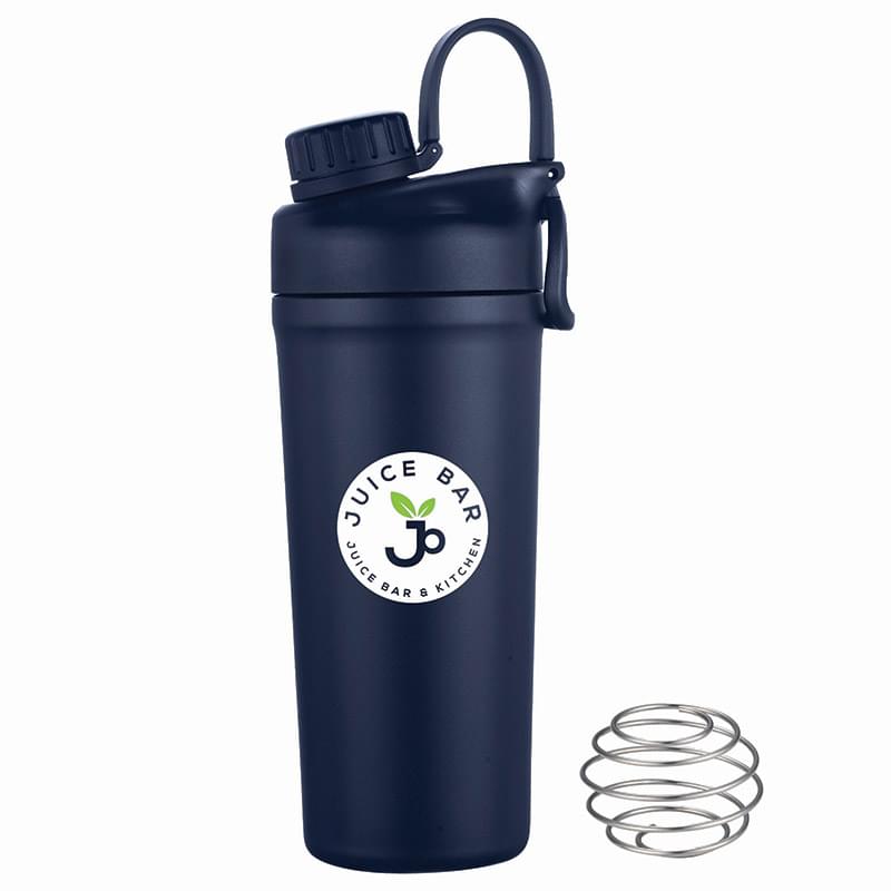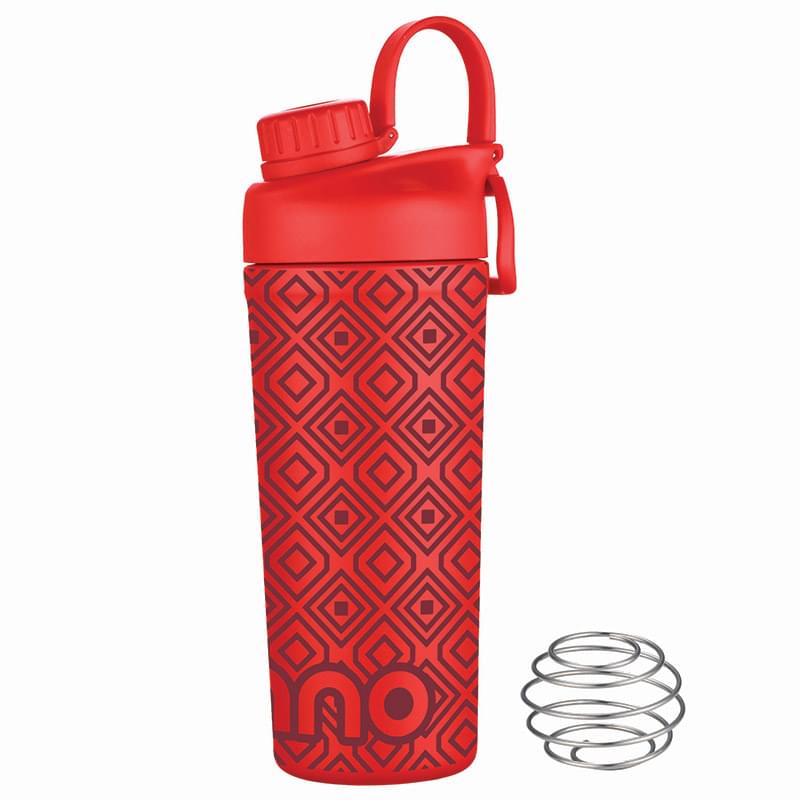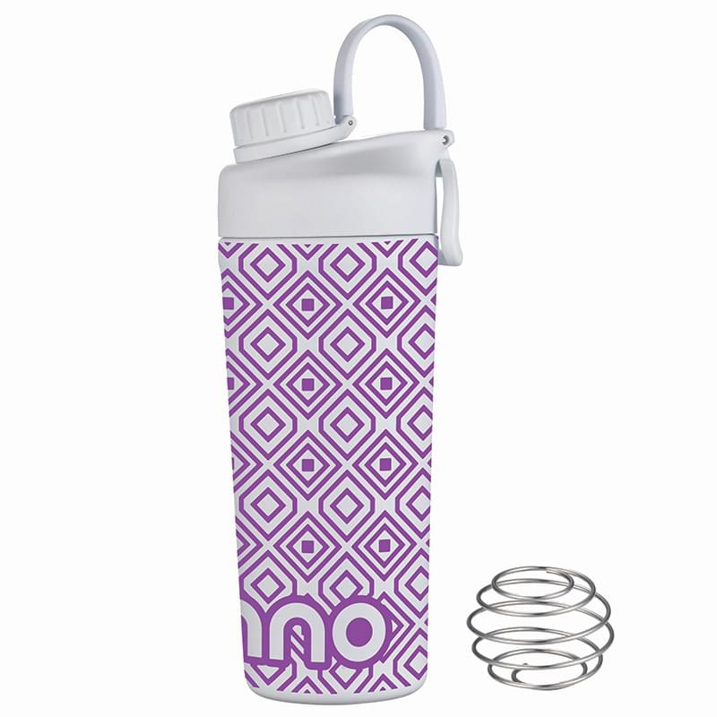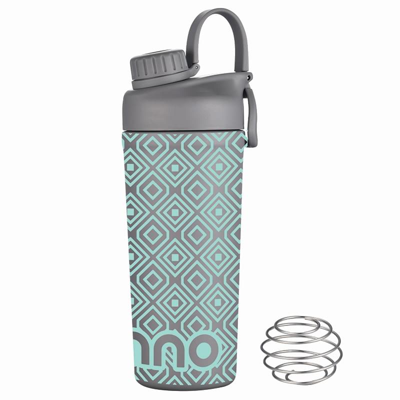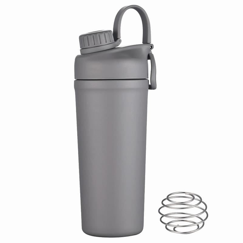 Mix and go with the Shaker Bottle with Stainless Steel Agitator. The included whisk blender ball increases the speed of blending ingredients like protein powder or infusing fresh fruit into the liquid. The double wall insulation keeps drinks hot or cold. Features a leakproof screw off cap for the drinking spout and the main lid screws off to easily add contents. BPA Free, Lead Free and FDA Compliant.
